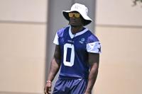 Dallas Cowboys defensive end Sam Williams looks on from the sidelines during NFL football practice, Thursday, May 29, 2025, in Frisco, Texas. (AP Photo/Jerome Miron)