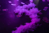 A feather boa is seen on stage during a "Pink Pony Prom" held to celebrate teen and young adult members of the LGBTQ+ community on Friday, May 30, 2025, in Portland, Ore. (AP Photo/Jenny Kane)