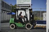 An employee drives a forklift at Energy Vault, a company that is creating an emergency power system that relies on hydrogen and battery storage, on Tuesday, May 27, 2025, in Calistoga, Calif. (AP Photo/Annika Hammerschlag)